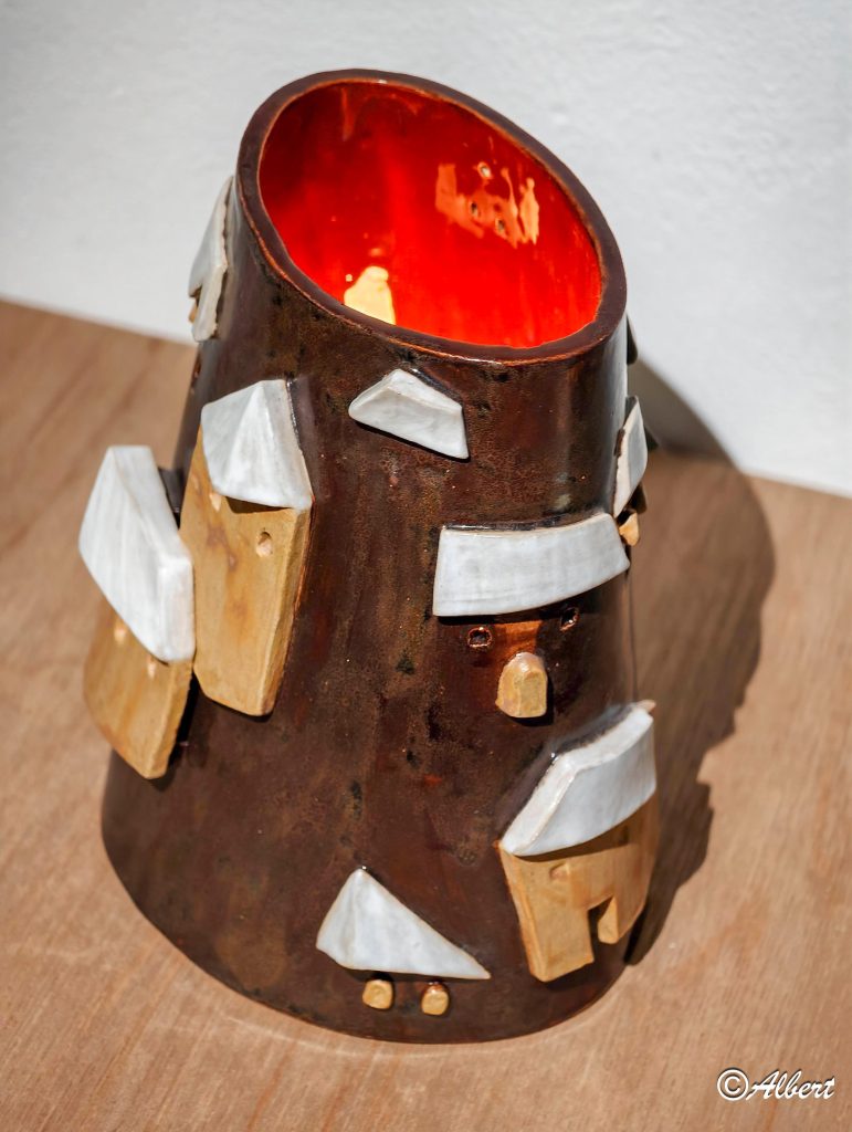 我不會說上帝獨愛他們,令他們生命與房子都不被毀,我只能感謝上帝不但對他們施予恩典,更對我大大的憐憫!畢竟這位老師對我尤如父親,在我漂洋過海攻讀藝術時,非常照顧我。上帝的愛顧觸發我創作了這燈座!祈願在黑暗中的家庭都被光明保護!