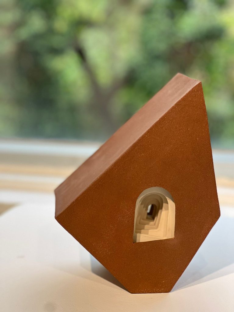 大約 20 多年前,當我開始創作第一套永恆系列作品時,我便幻想著,若是展覽時,應該把它們展示在窗邊位置,那麽,當觀眾被那條內置的隧道吸引時,眼光便會穿越一級一級的階梯,通往窗外廣闊的空間,那是充滿光明與生命的路!這些年來,同一系列的作品曾在不同展覽場地展出過,但都沒有在窗旁擺放過,今年 5 月的師生展,這個一直放在心裡的小小祈望,終於悄悄地、不經意地成就了!或許,藝術家就是有這份浪漫與執著吧!仍有東西執著、堅持實在是一種福氣!而背後承託著的是真理,它不會因環境、時間、政治、經濟等而有所變更,永恆的生命也是這樣!