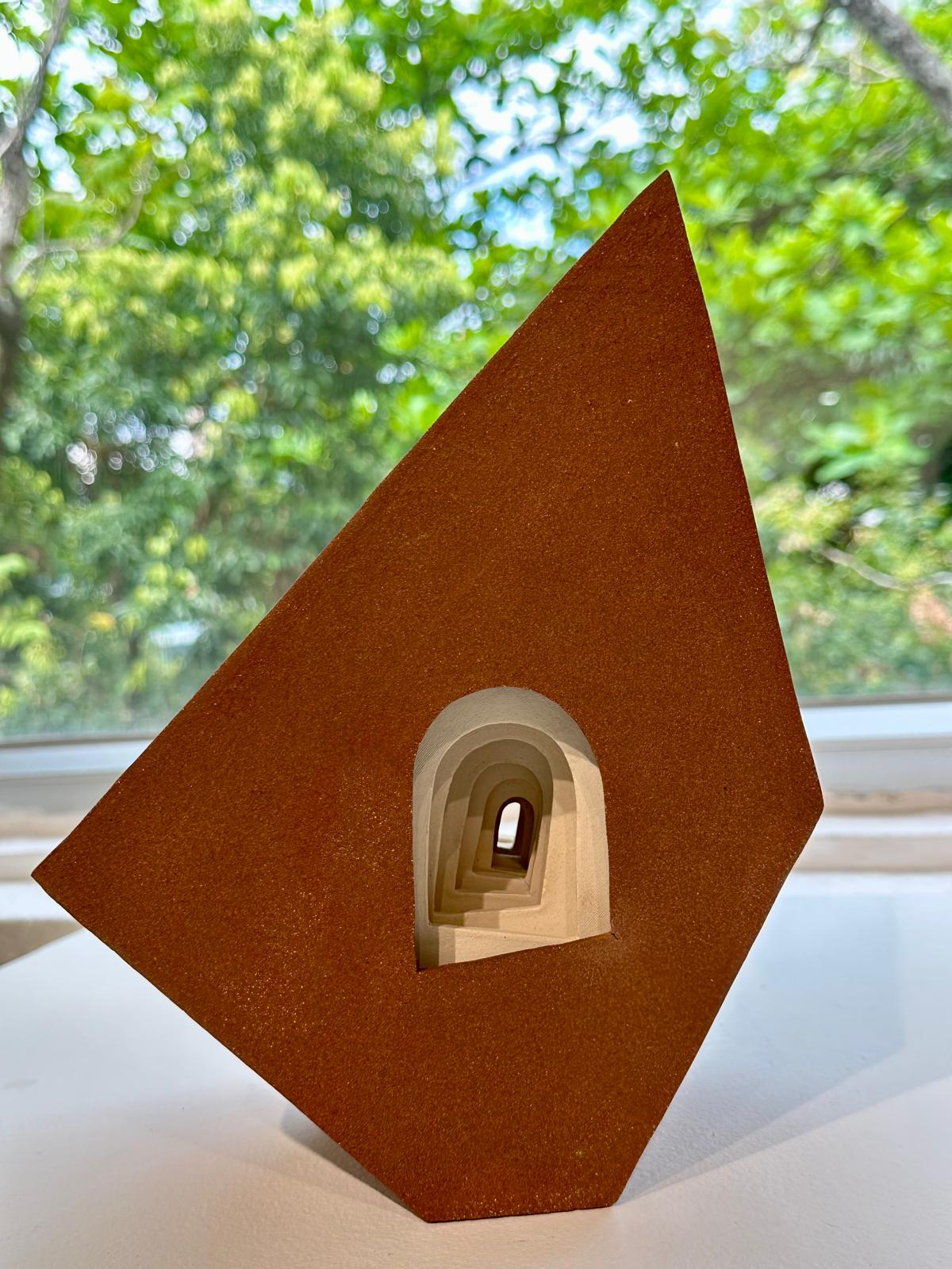 大約 20 多年前,當我開始創作第一套永恆系列作品時,我便幻想著,若是展覽時,應該把它們展示在窗邊位置,那麽,當觀眾被那條內置的隧道吸引時,眼光便會穿越一級一級的階梯,通往窗外廣闊的空間,那是充滿光明與生命的路!這些年來,同一系列的作品曾在不同展覽場地展出過,但都沒有在窗旁擺放過,今年 5 月的師生展,這個一直放在心裡的小小祈望,終於悄悄地、不經意地成就了!或許,藝術家就是有這份浪漫與執著吧!仍有東西執著、堅持實在是一種福氣!而背後承託著的是真理,它不會因環境、時間、政治、經濟等而有所變更,永恆的生命也是這樣!